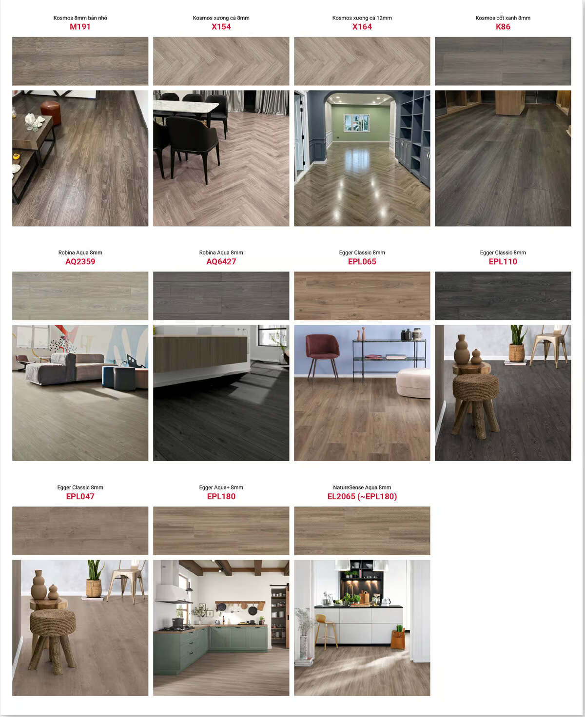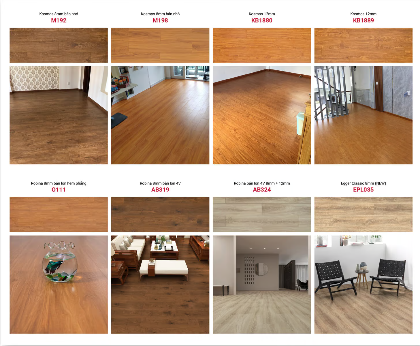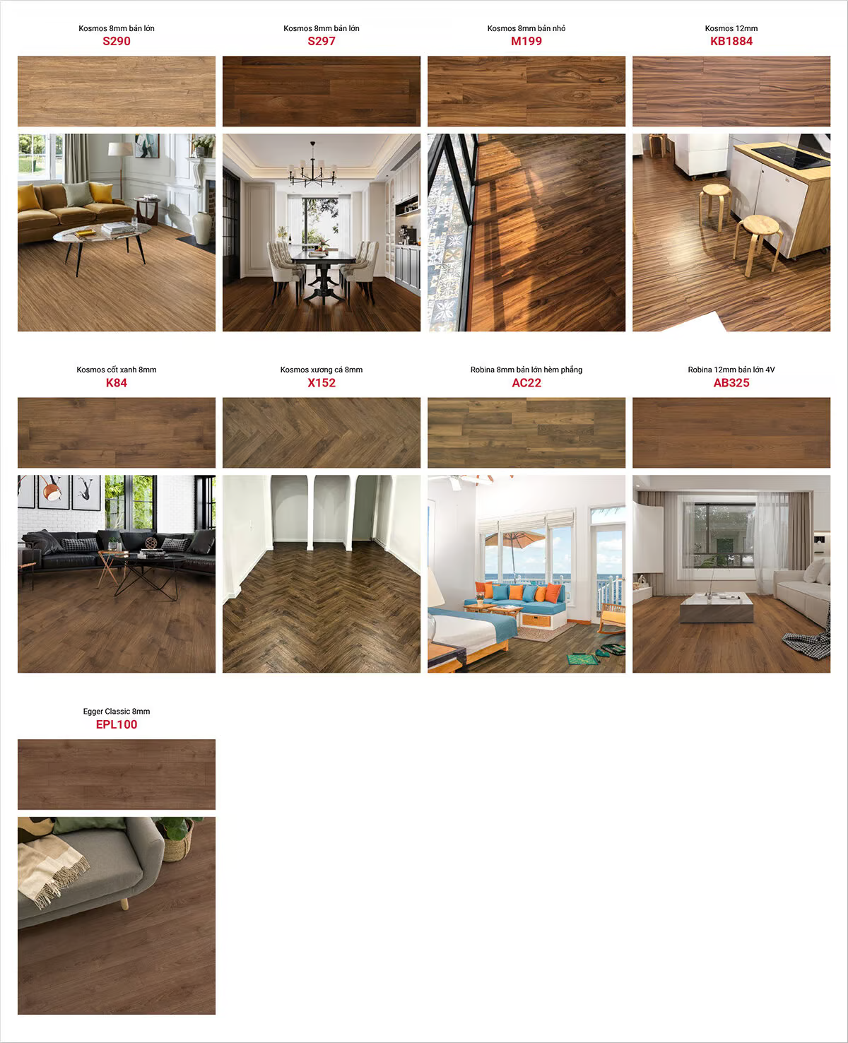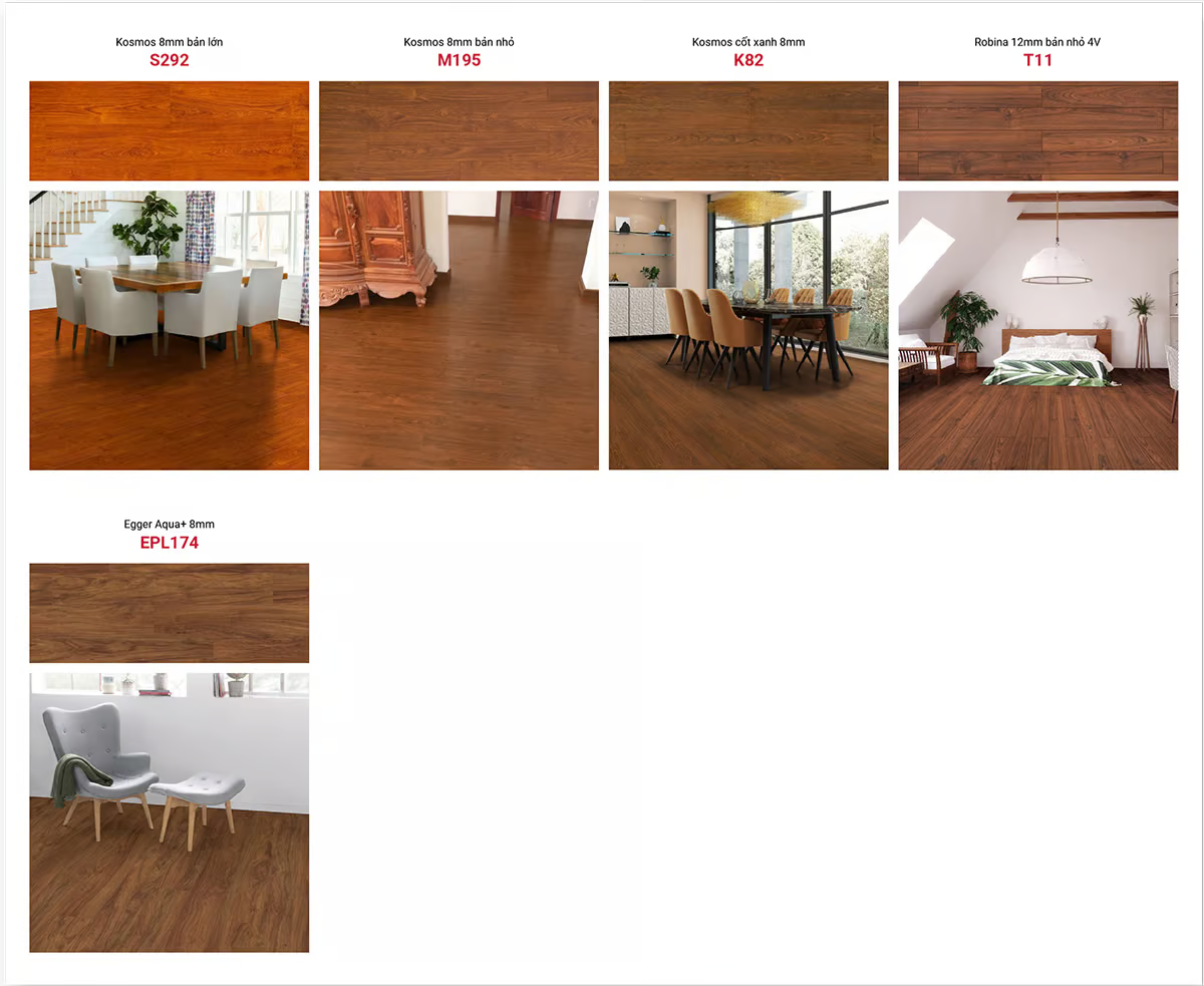 | Sàn gỗ Egger | Sàn gỗ Robina | Sàn gỗ Kosmos | |
