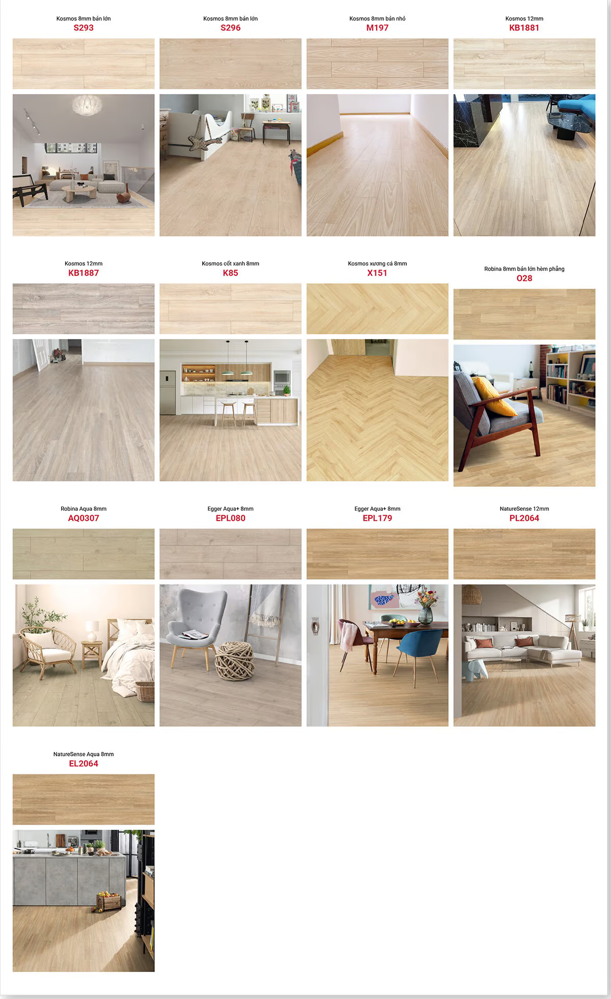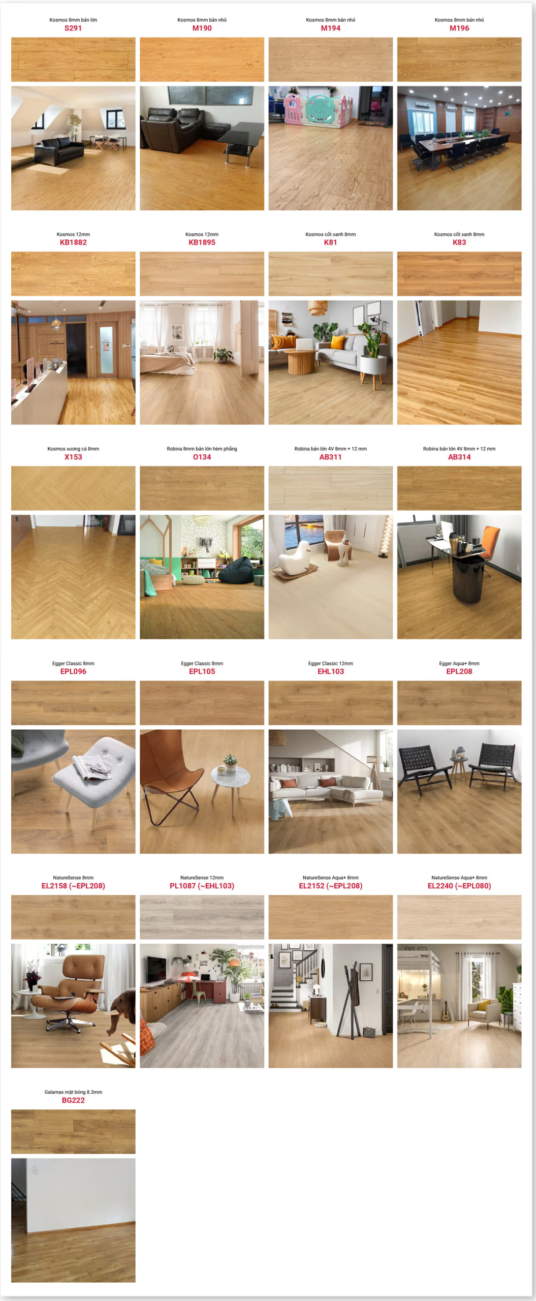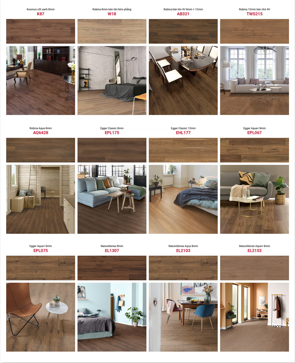 | Sàn gỗ Egger | Sàn gỗ Robina | Sàn gỗ Kosmos | |